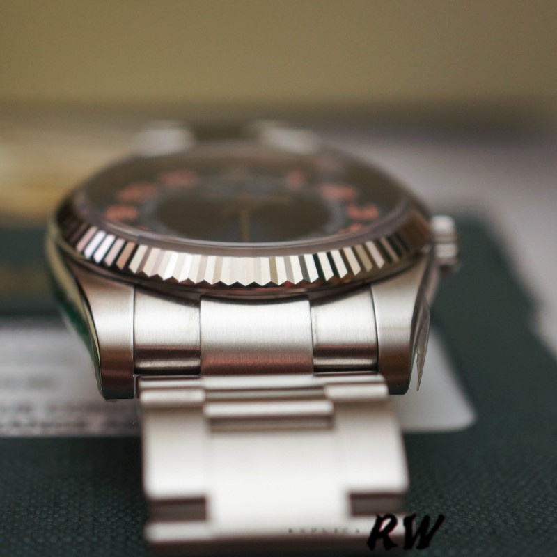 Rolex Oyster Perpetual Air-King 114234 Blue Dial Stainless Steel Oyster 34mm Unisex replica watch features a 34mm stainless steel case, new style oyster bracelet, white gold fluted bezel. Screw-down crown.Scratch resistant sapphire crystal. Inner engraved bezel.Concentric blue dial with orange arabic numerals. Stainles steel oyster bracelet with oysterlock clasp.The watch is running strong and keeping accurate time, having been timed to precision on Witschi Expert Timing Machine.