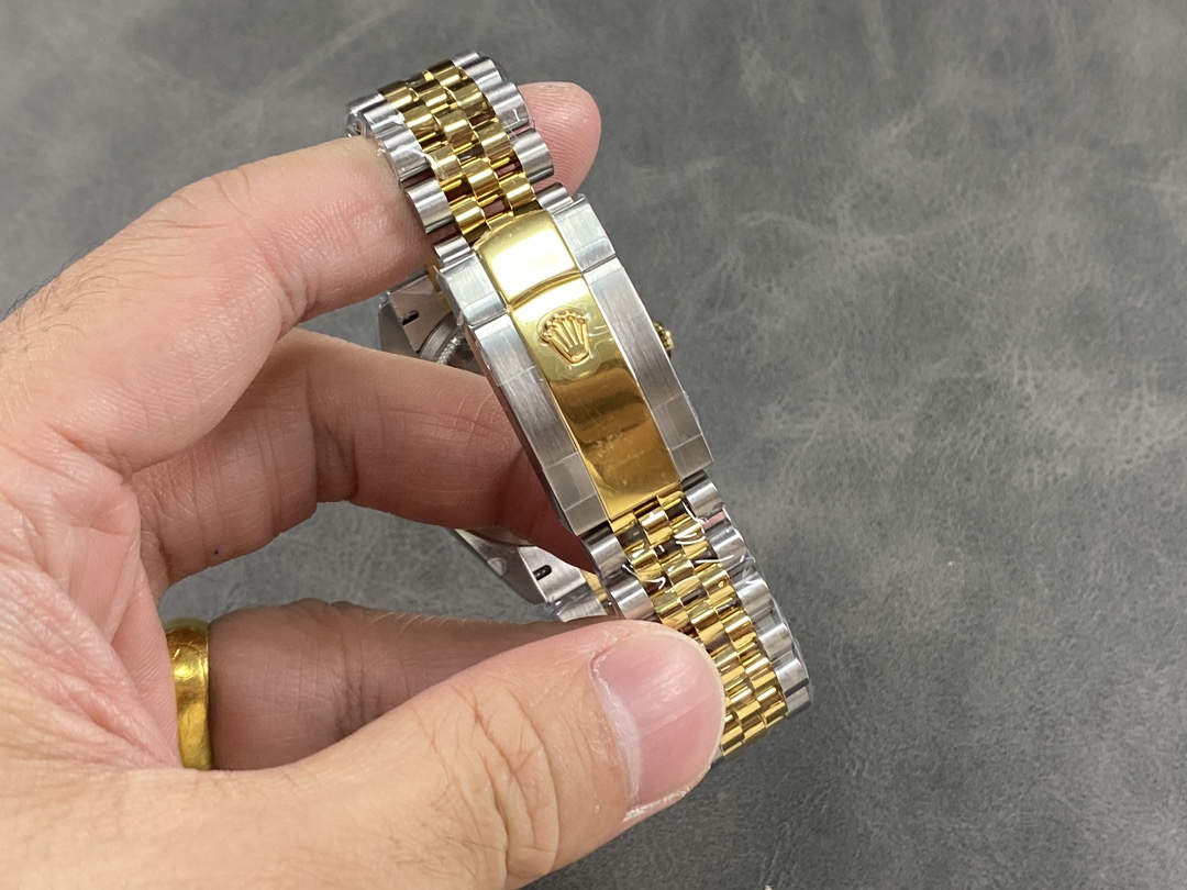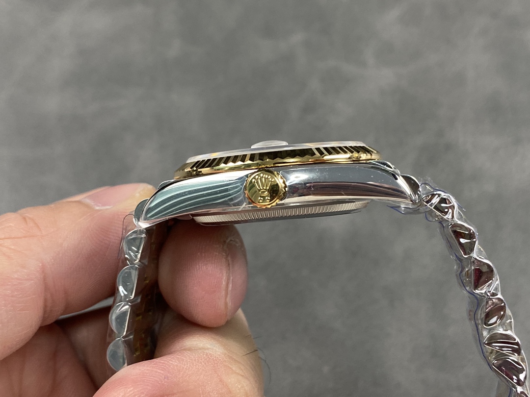 Rolex Datejust 126233 White Roman Dial Fluted Bezel 36MM Unisex Replica Watch, 36mm yellow Rolesor case with Oystersteel monobloc middle case, screw-down steel back, screw-down yellow crown, yellow fluted bezel, White dial with roman numeral hour markers.Date displayed under cyclops lens in window at 3 o'clock with instantaneous date and rapid setting.Yellow Rolesor Jubilee bracelet with five-piece links, folding Oysterclasp buckle with Easylink comfort extension link.