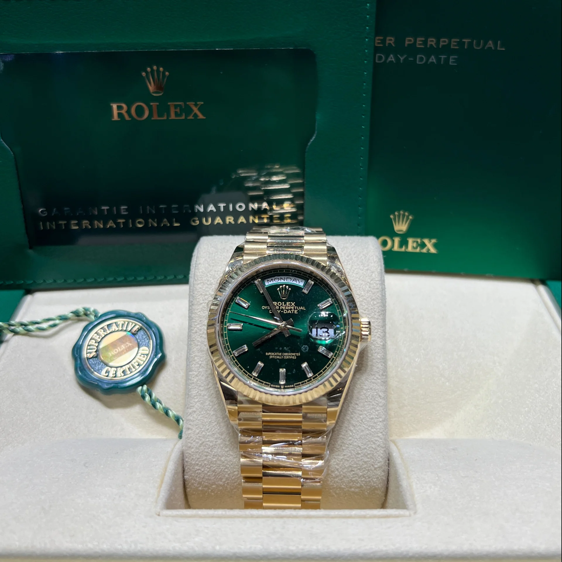 Rolex 2024 Day-Date 128238-0130 Green Dial Yellow Gold Bracelet