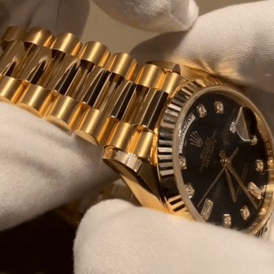 The Rolex fluted bezel is a mark of distinction. Originally, the fluting of the Oyster bezel had a functional purpose: it served to screw the bezel onto the case helping to ensure the waterproofness of the watch. It was therefore identical to the fluting on the case back, which was also screwed onto the case for waterproofness, using specific Rolex tools. Over time, the fluting became an aesthetic element, a genuine Rolex signature feature. Today the fluted bezel is a mark of distinction, in gold on this Day-Date 36.
