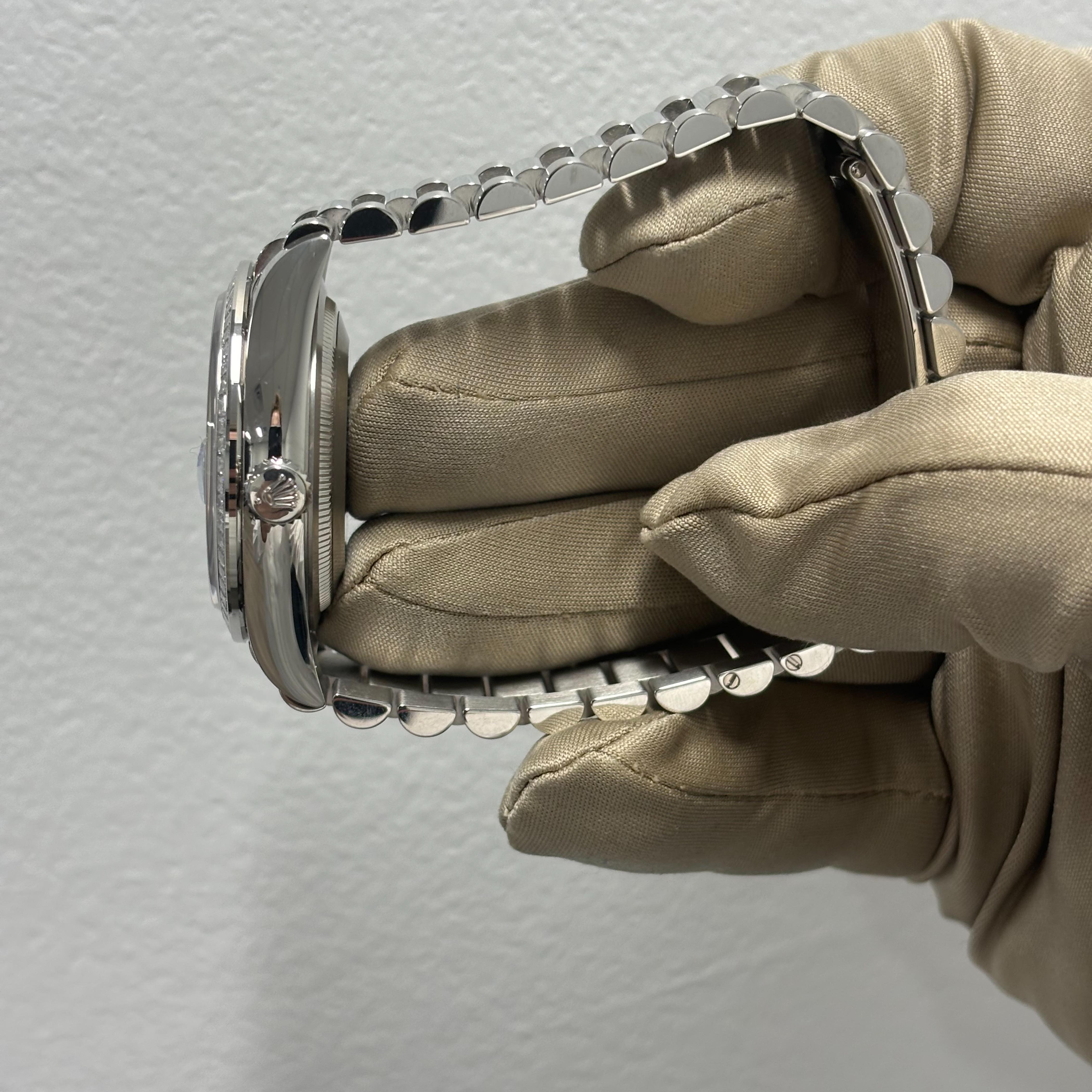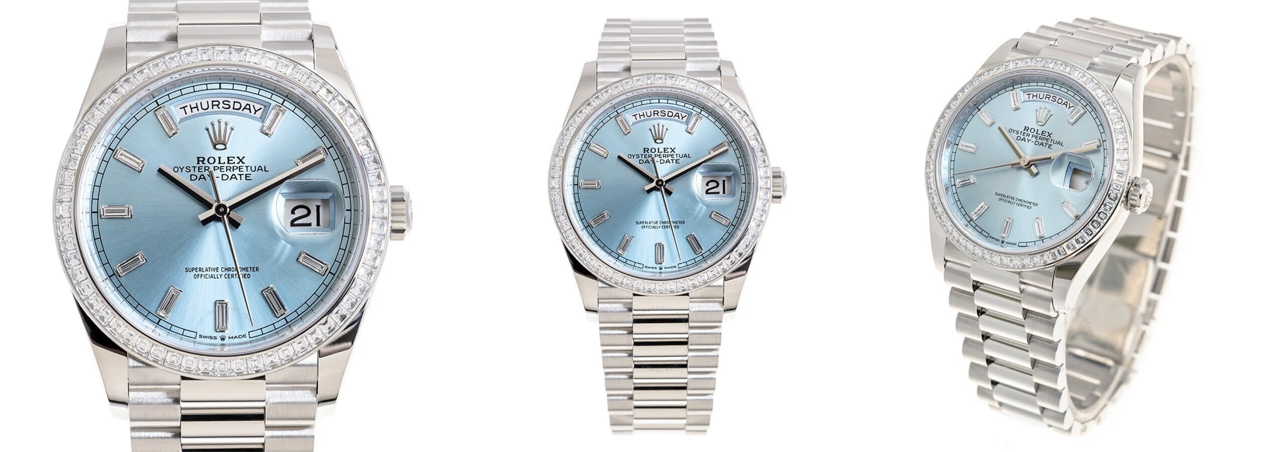 Moreover, the watch comes with a robust 2-year international warranty, ensuring peace of mind and confirming its excellent build quality. Whether you are a seasoned collector or someone looking for the perfect wristwatch to make a statement, this rolex day date platinum ice blue baguette replica will fulfill your desires. Its near-perfect mimicry of the original means even your jeweler might not distinguish it from its high-end counterpart. In every sense, the Rolex Day-Date Platinum Replica combines the aura of luxury with the reliability of top-tier craftsmanship, making it an inevitable choice for your collection.