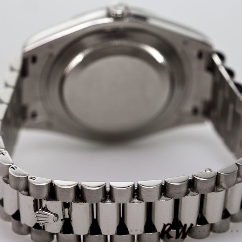 Rolex Day-Date 218206 Ice Blue Diamond Dial Platinum 41MM Mens Replica Watch,has a Platinum 41 mm Round Case with Screw Down Crown and a Platinum Bezel.Scratch resistant sapphire crystal with Cyclops magnifier. Ice blue dial with diamond hour markers.Baguette-cut diamonds for the 6 and 9 O'clock hour markers,Date Window Displayed at 3 O'Clock,Day Window Displayed at 12 O'Clock,Platinum President Bracelet will look great on your wrist.
