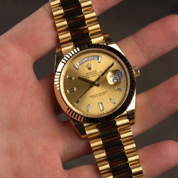 The Rolex fluted bezel is a mark of distinction. Originally, the fluting of the Oyster bezel had a functional purpose: it served to screw the bezel onto the case helping to ensure the waterproofness of the watch. It was therefore identical to the fluting on the case back, which was also screwed onto the case for waterproofness, using specific Rolex tools. Over time, the fluting became an aesthetic element, a genuine Rolex signature feature. Today the fluted bezel is a mark of distinction, in gold on this Day-Date 40.