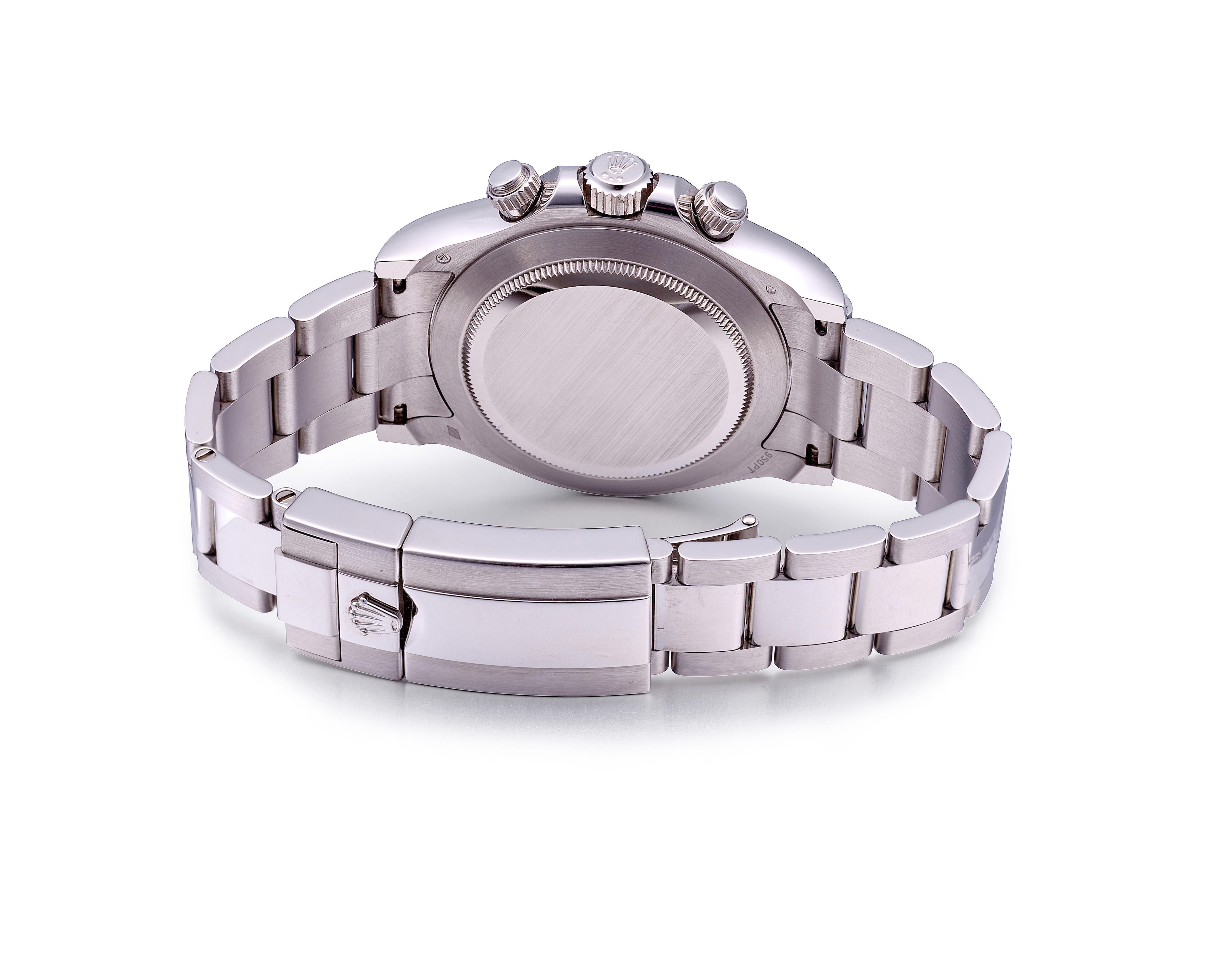 What truly sets the Rolex Daytona Cosmograph 116506 apart is its heart—the automatic caliber 4130 movement. This movement not only provides a remarkable power reserve of 60 hours but also ensures precision within -3/+3 sec/day, adhering to the stringent limits of COSC certification. Feel the robust energy of every tick as this watch keeps perfect time, no matter where life takes you. Moreover, the adjustable links ensure a tailor-fit for all wrist sizes, wrapping around your wrist in a secure embrace that feels both comforting and luxurious.