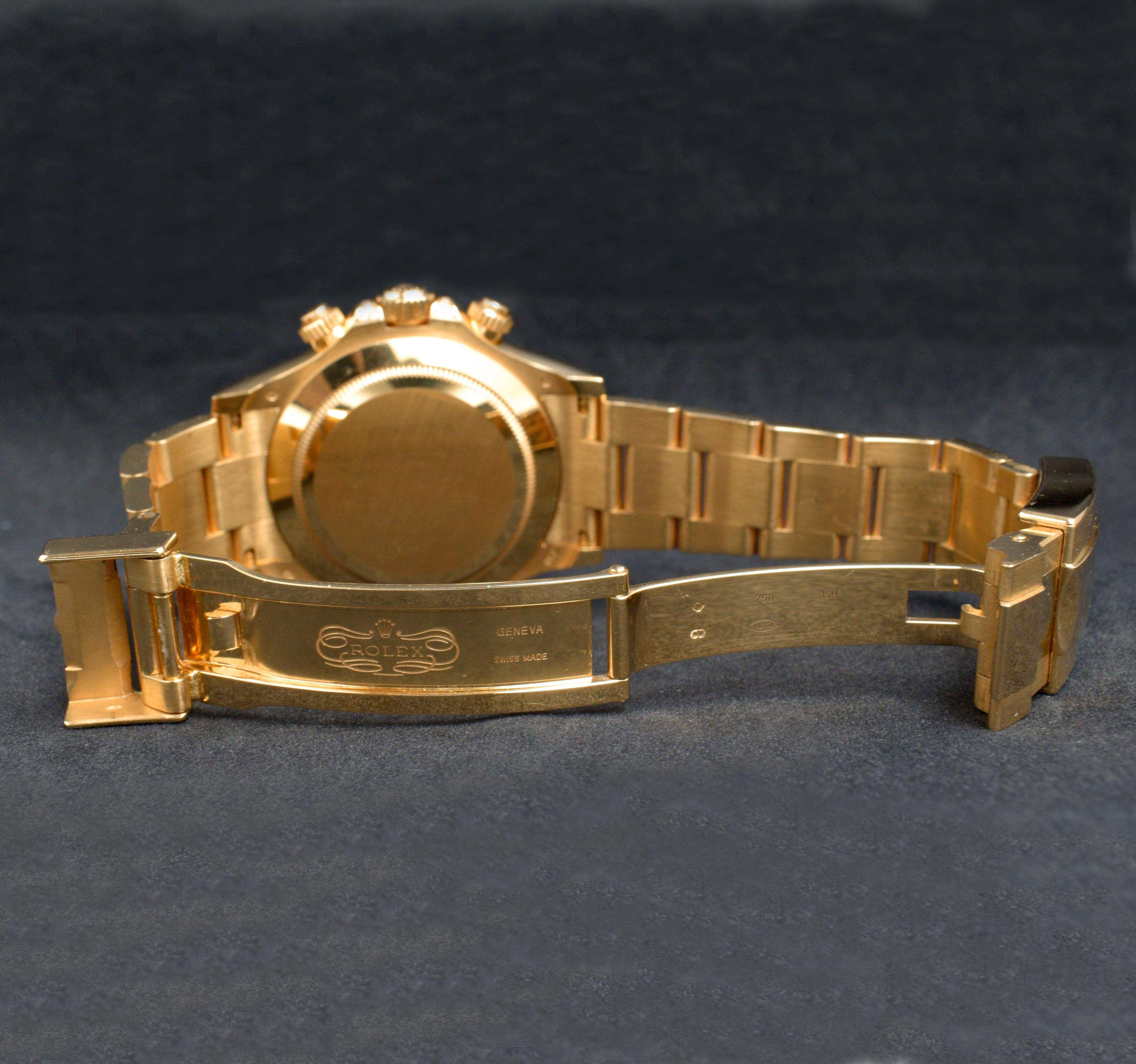 - Black Dial: The striking black dial offers a bold contrast to the yellow gold case, enhancing the timeless and modern design of the watch.