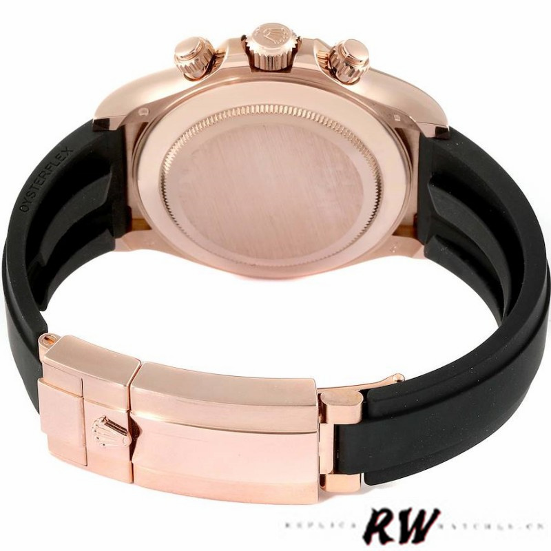 Rolex Cosmograph Daytona 116515LN Everose Gold Pink Dial 40mm Mens Replica Watch.40mm Everose gold case with a black oysterflex band. Fixed tachymeter scale black ceramic bezel. Pink dial with everose gold hands and diamond hour markers.Rubber strap with Rose Gold Flip Lock Deployment Clasp.