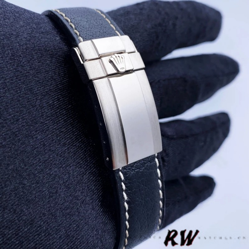 Rolex Daytona 116519 Meteorite Dial Automatic 40mm Mens Replica Watch.40mm white gold case with white gold tachymeter bezel. Meteorite dial with black hands and Roman numeral hour marker. The red hands for the chronograph and subdials really pop on this piece and go nicely with the sheen from the meteorite dial!leather strap with fold over clasp with safety. Will fit up to 7-Inch wrist.