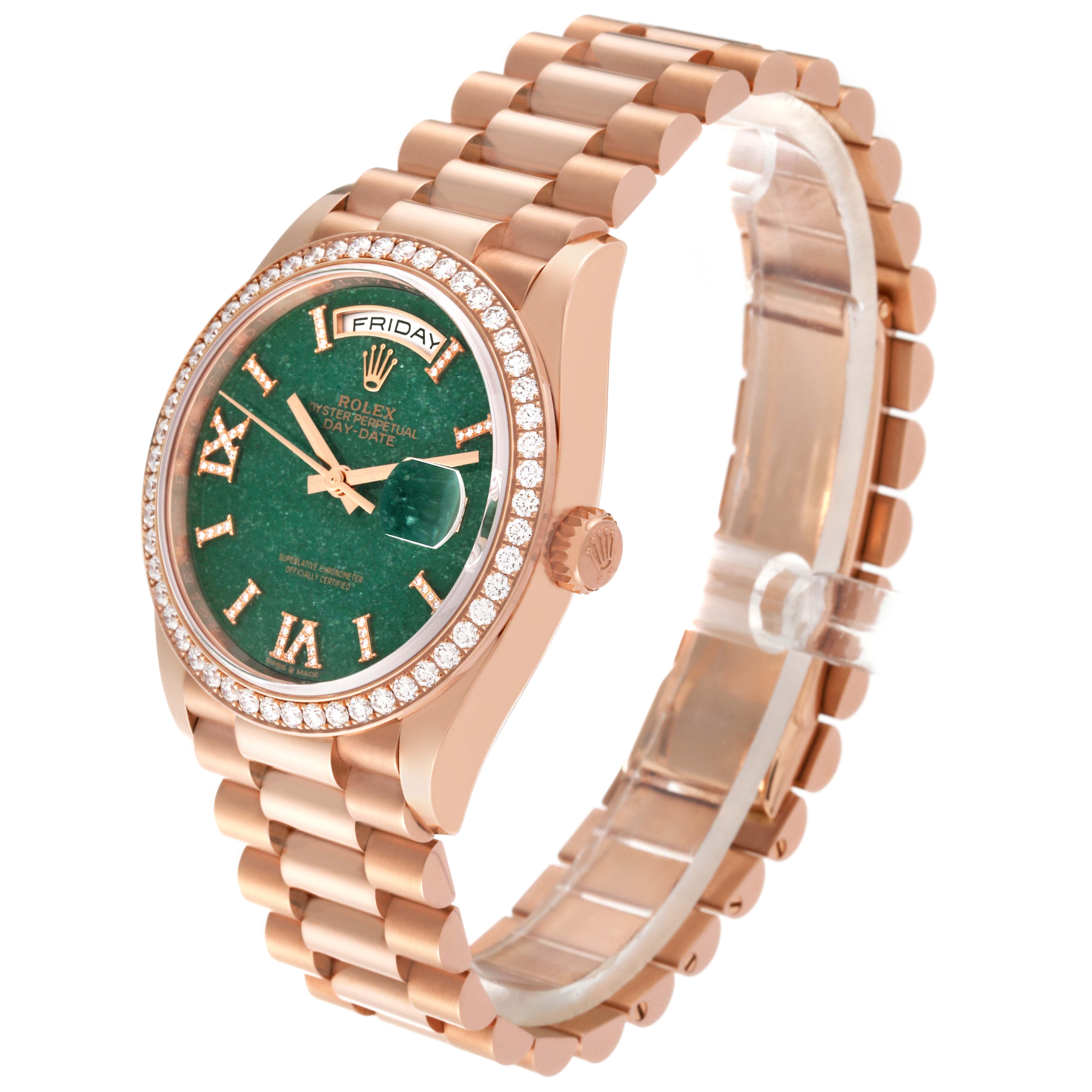 • Rolex Day-Date Rose Gold Green Aventurine Diamond-Set Roman Dial Diamond Bezel Women's Watch M128345RBR-0068