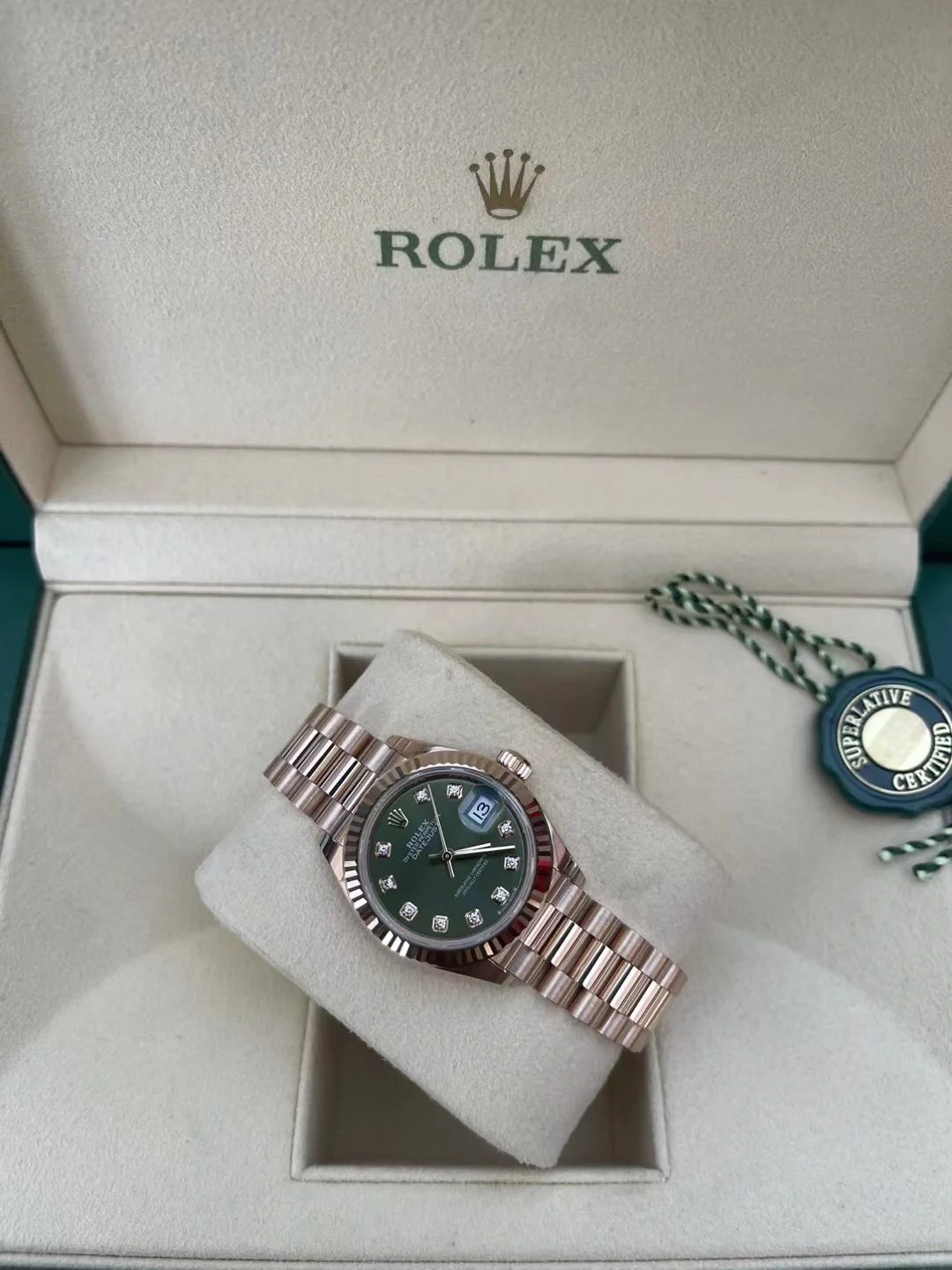 To preserve the beauty of its pink gold watches, Rolex created and patented an exclusive 18 ct pink gold alloy cast in its own foundry: Everose gold. Introduced in 2005, 18 ct Everose is used on all Rolex Oyster models in pink gold.