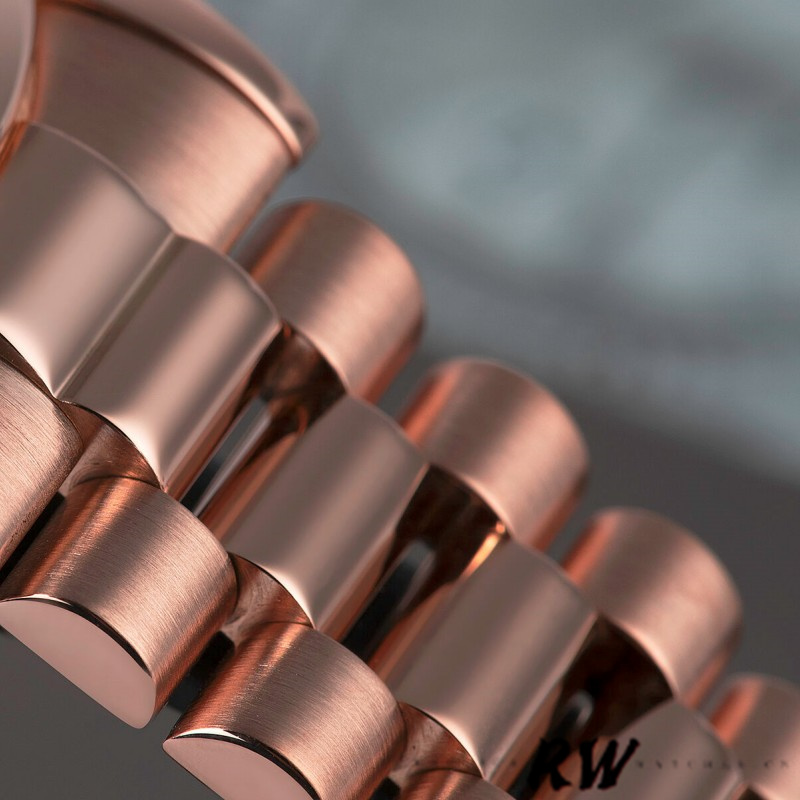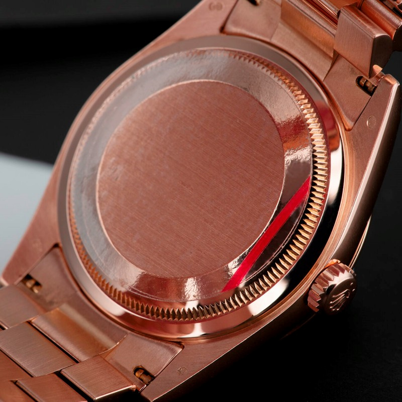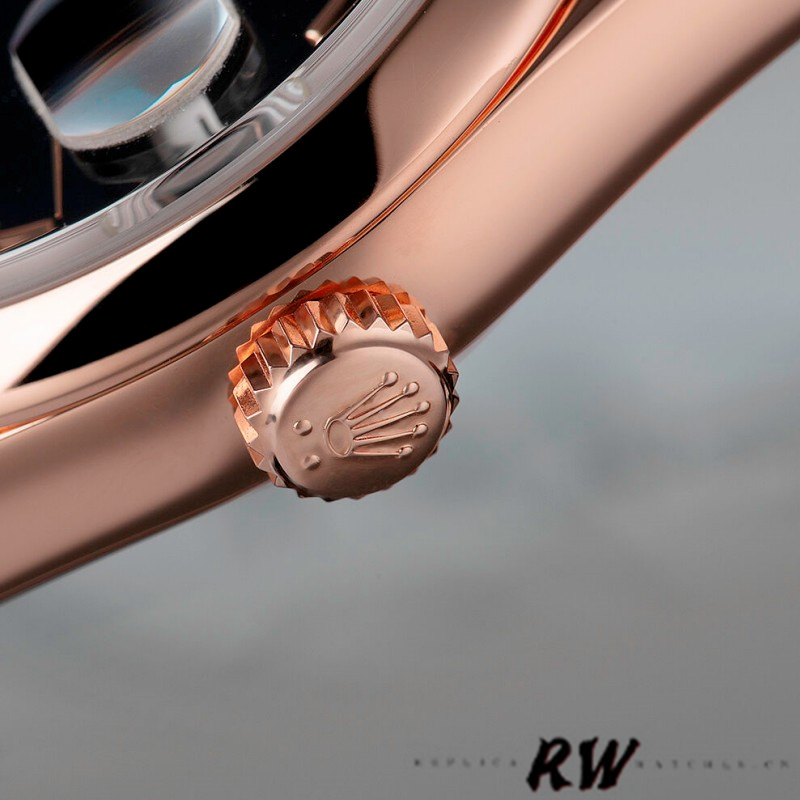 Rolex Day Date 118205 Black Dial 36mm Unisex Replica Watch.36mmRound case shape.Fixed -domed everose gold bezel. Black dial with rose-gold tone hands and Index numeral hour markers. Minute markers around the outer rim. Date display at 3 o'clock; day display at 12 o'clock.. Automatic movement. Scratch resistant sapphire crystal. Screw down crown. Solid case back.Concealed Crown clasp.