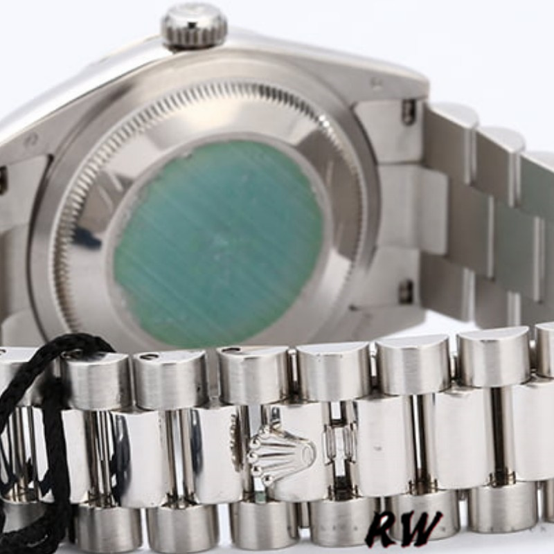 Rolex Day Date 118206 Meteorite Grey Dial 36mm Unisex Replica Watch . 36mm white gold case and fluted bezel, Meteorite dial with silver tone hands and diamond hour markers. Minute markers around the outer rim. duo of diamond indexes at 6 and 9 o’clock, rolesor white gold bracelet with semi-circular links, day aperture at 12 o’clock position, date aperture at 3 o'clock position with a cyclops magnifying lens, white gold hands indicating the hour, minute and second. Screw-down white gold crown.