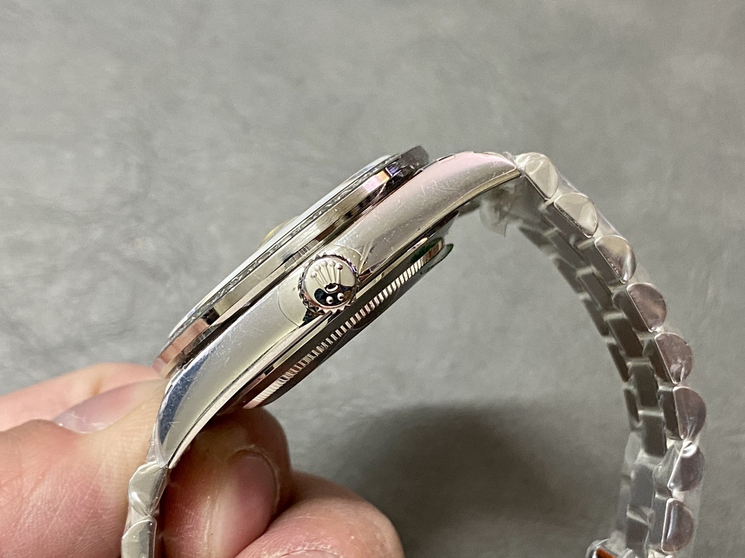 • Rolex Day-Date 40 Platinum Arabic Numerals Green with Diamonds 228396tbr