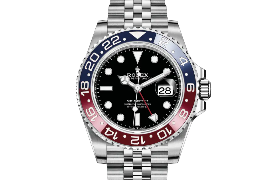 The emblematic two-colour bezel makes the GMT-Master II instantly recognizable.
