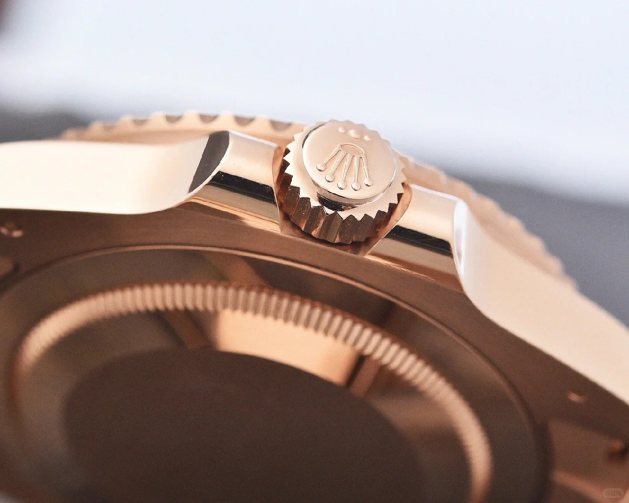 40mm 18K Everose case, screw-down crown, bidirectional rotatable 24-hour graduated bezel with brown and black Cerachrom insert and engraved numerals, scratch-resistant sapphire crystal with cyclops lens over the date, black dial, hour markers set with Chromalight, Rolex caliber 3285 self-winding movements with the second time-zone hour hand and instantaneous date, approximately 70 hours of power reserve, Oyster bracelet with flat three-piece links, folding Oysterclasp buckle with Easylink 5mm comfort extension link. Waterproof to 100 meters.