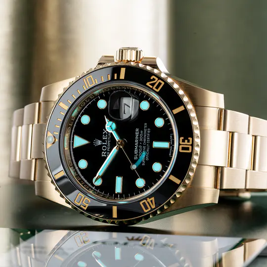 It features a unidirectional rotatable bezel and solid-link Oyster bracelet. The latest generation Submariner and Submariner Date remain faithful to the original model launched in 1953. In watchmaking, the Submariner represented a historic turning point; it set the standard for divers’ watches.