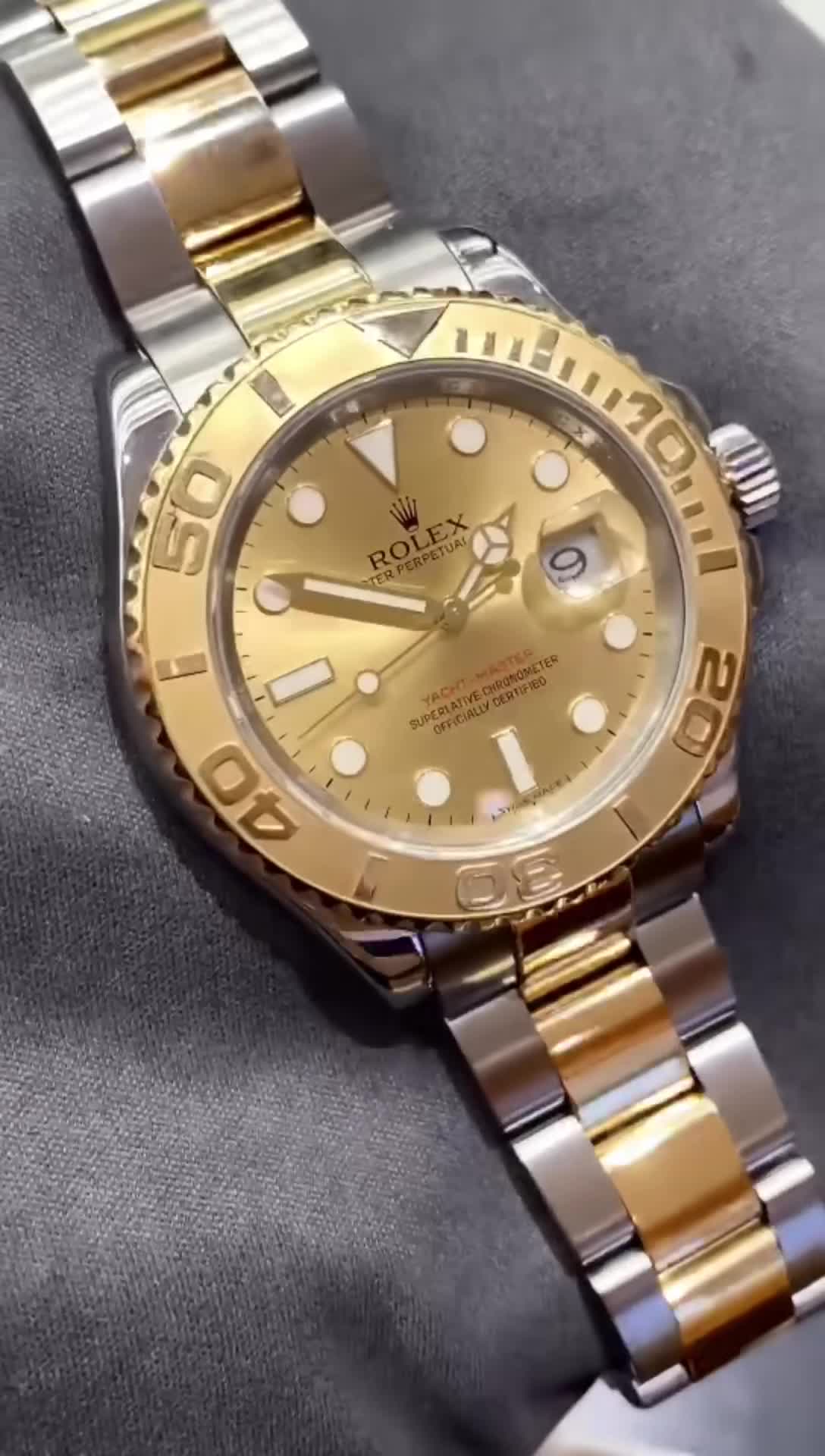 - Polished with Brushed Solid 18k Yellow Gold & 904L Oystersteel Stainless Steel Oyster Bracelet