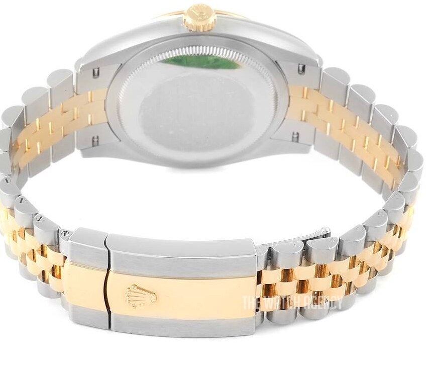 Rolex Datejust (116233) self - winding automatic watch, features a 36mm stainless steel case with an 18k yellow gold fluted bezel surrounding a champagne diamond dial on a stainless steel and 18k yellow gold Jubilee bracelet with folding buckle.