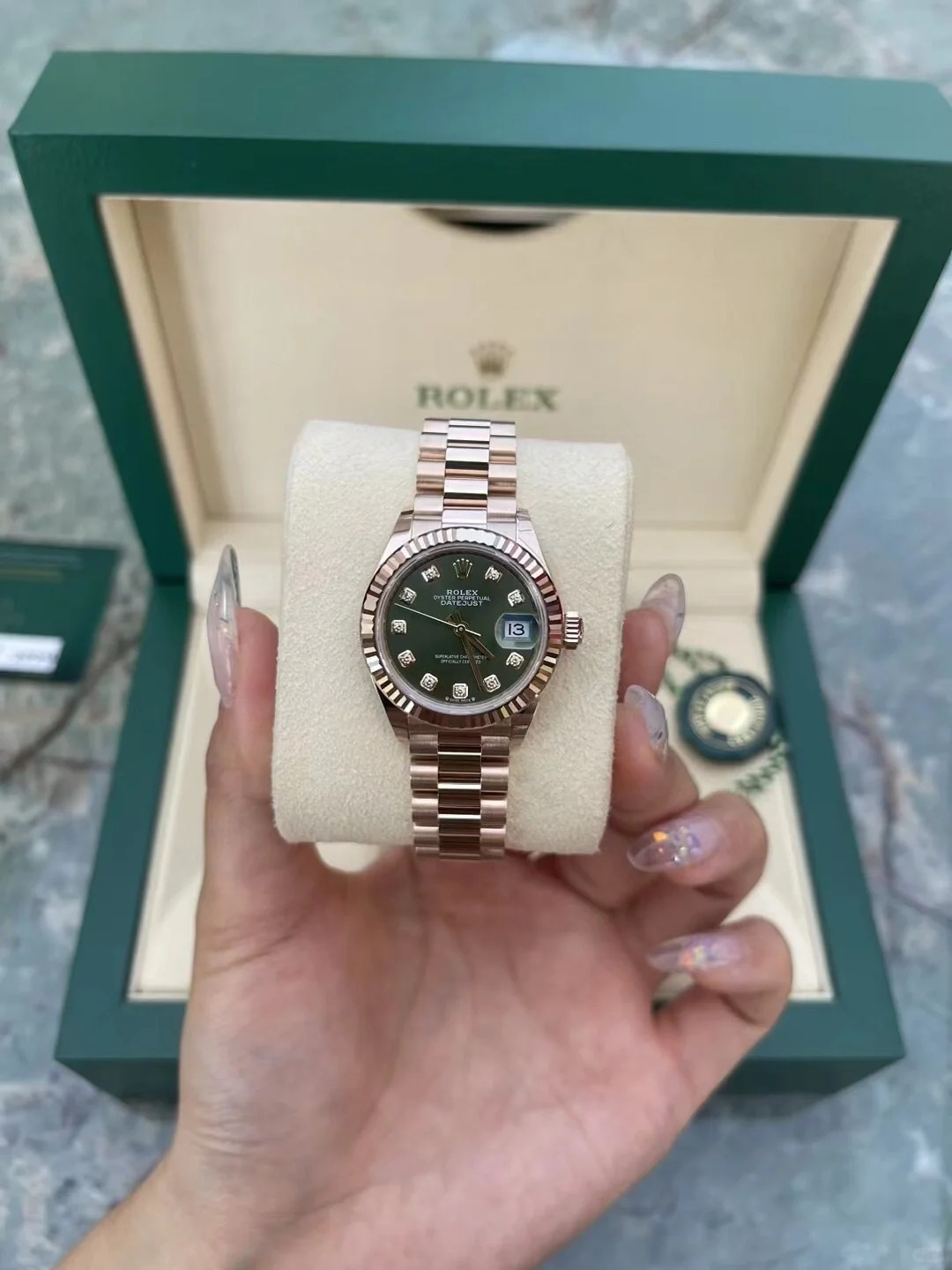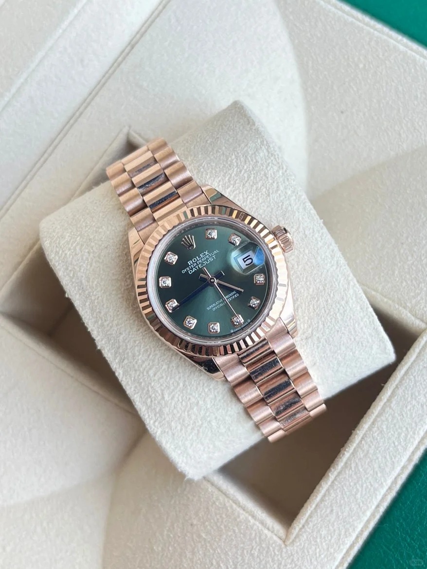 To preserve the beauty of its pink gold watches, Rolex created and patented an exclusive 18 ct pink gold alloy cast in its own foundry: Everose gold. Introduced in 2005, 18 ct Everose is used on all Rolex Oyster models in pink gold.