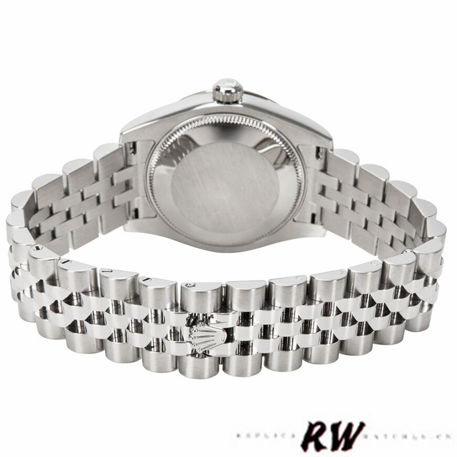 Rolex Datejust 178344 Black MOP Roman Dial 31MM Lady Replica Watch,31mm stainless steel case,Mother of Pearl Black Dial with Roman Numerals,white gold bezel set with 24 scattered diamonds, scratch-resistant sapphire crystal with cyclops lens over the date,date at 3 o'clock, Oystersteel Jubilee bracelet with five-piece links, concealed folding Crownclasp buckle.