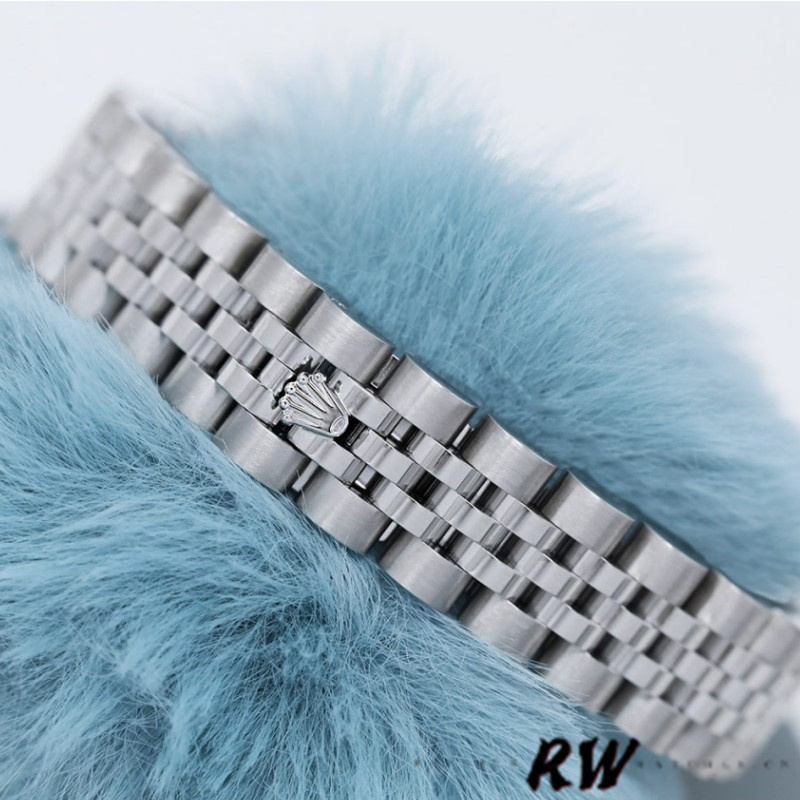 Rolex Datejust 179174 Concentric Circle Blue Dial Fluted Bezel 26MM Lady Replica Watch, 26mm Stainless steel oyster case in diameter. White gold fluted bezel. Scratch resistant sapphire crystal with cyclops magnifier.Concentric Circle Blue Dial with Arabic Numeral Hour Markers. Date calendar at 3 o'clock aperture. Stainless steel jubilee bracelet with a hidden clasp.