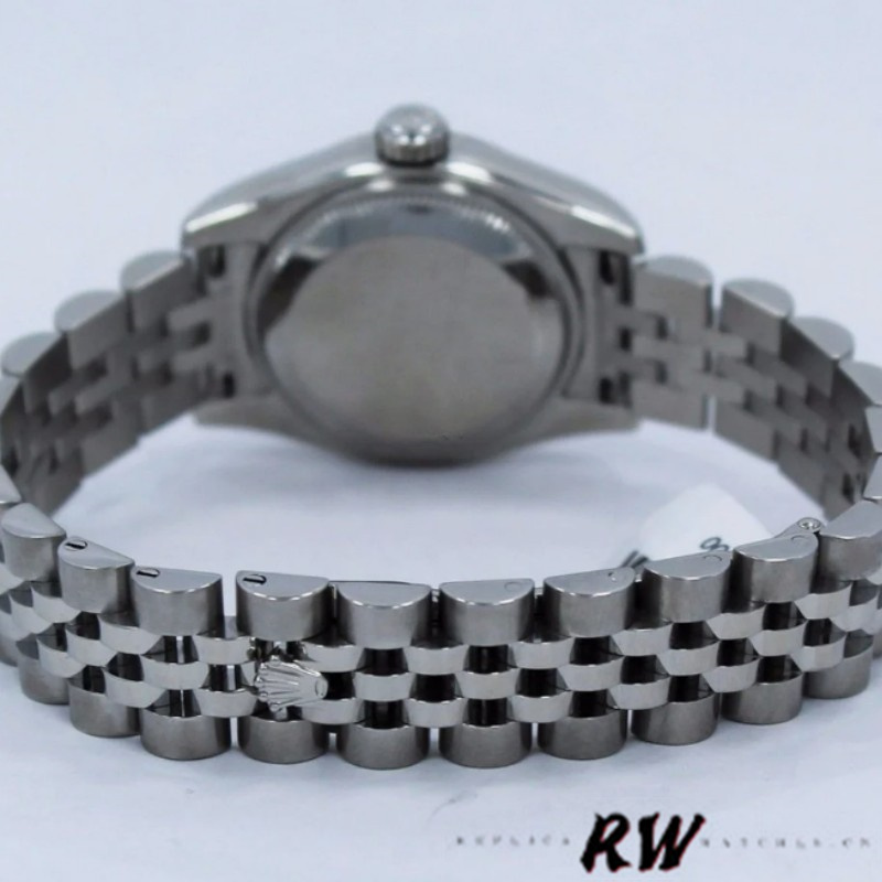 Rolex Datejust 179174 White Roman Dial Fluted Bezel 26MM Lady Replica Watch, 26mm Stainless steel oyster case in diameter. White gold fluted bezel. Scratch resistant sapphire crystal with cyclops magnifier.White with Roman Numeral Markers. Date calendar at 3 o'clock aperture. Stainless steel jubilee bracelet with a hidden clasp.
