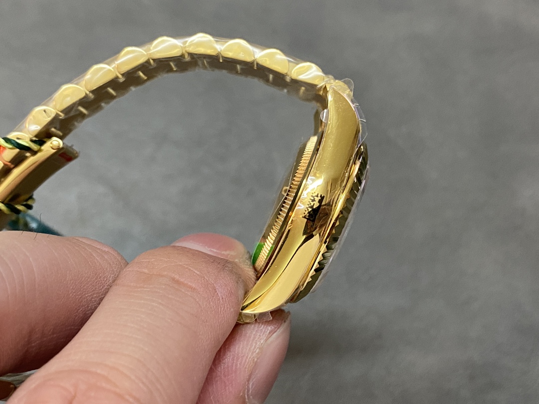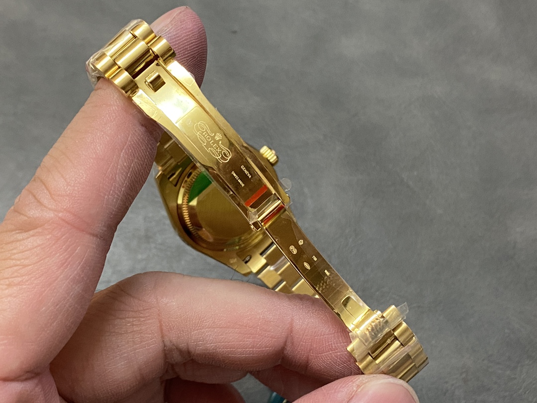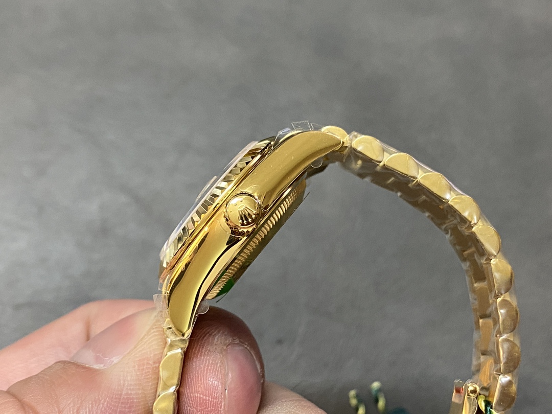 Rolex Datejust 279178 Mother Of Pearl Dial Fluted Bezel 28mm Lady Replica Watch, has a yellow gold 28 mm Round Case with Screw Down Crown and a yellow gold Fluted Bezel.Mother of Pearl dial with Diamond hour marker. Date Window Displayed at 3 O'Clock,Yellow gold President bracelet with semi-circular three-piece links, concealed folding Crownclasp buckle.