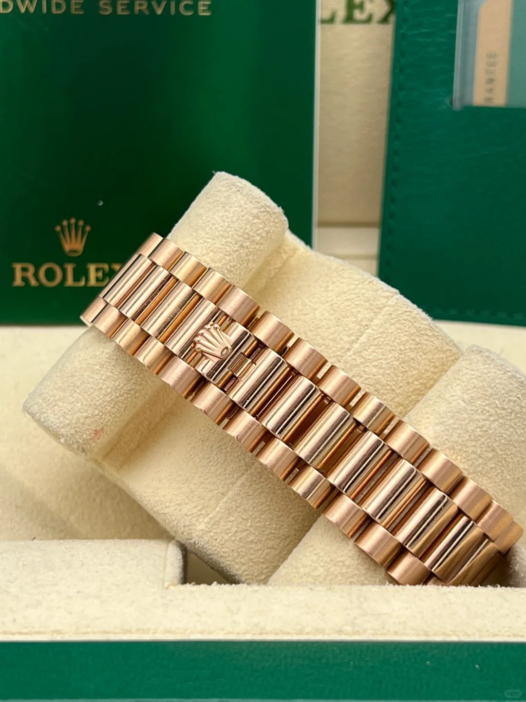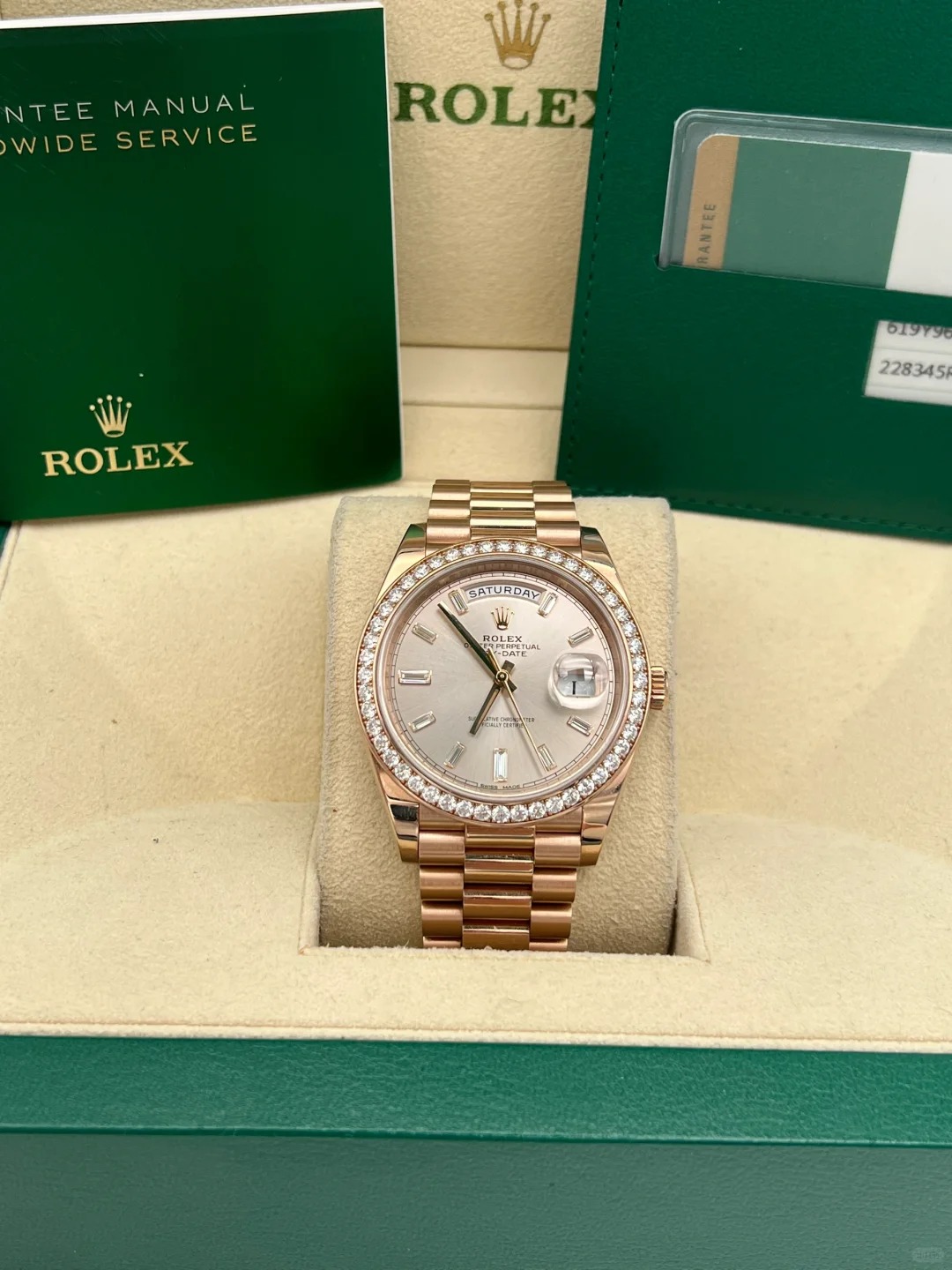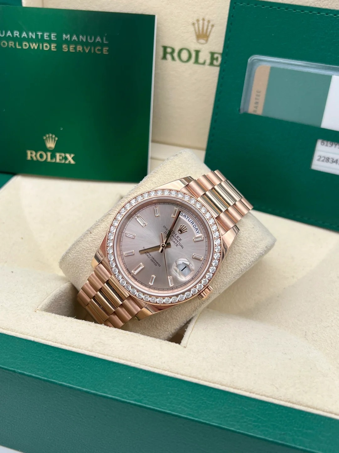 • Rolex Day-Date 40 18k Everose Gold Sundust Diamond Dial Diamond Bezel Men's Watch M228345RBR-0007