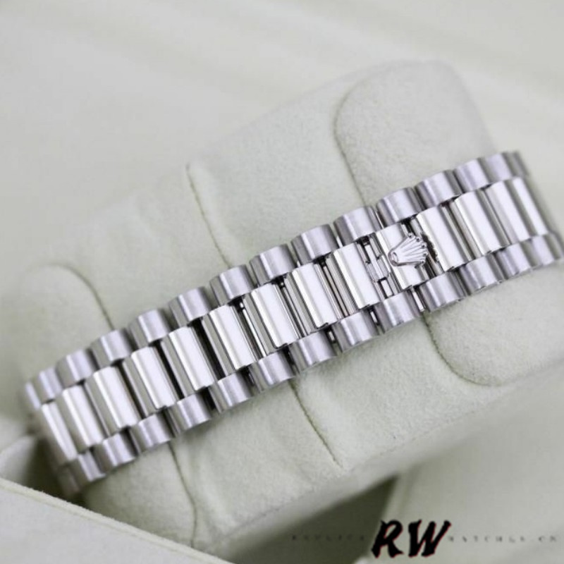 Rolex Day-Date 218206 Concentric Black Dial Platinum 41MM Mens Replica Watch,has a Platinum 41 mm Round Case with Screw Down Crown and a Platinum Bezel.Scratch resistant sapphire crystal with Cyclops magnifier.Concentric Black dial with Roman Numerals hour markers.Date Window Displayed at 3 O'Clock,Day Window Displayed at 12 O'Clock,Platinum President Bracelet will look great on your wrist.