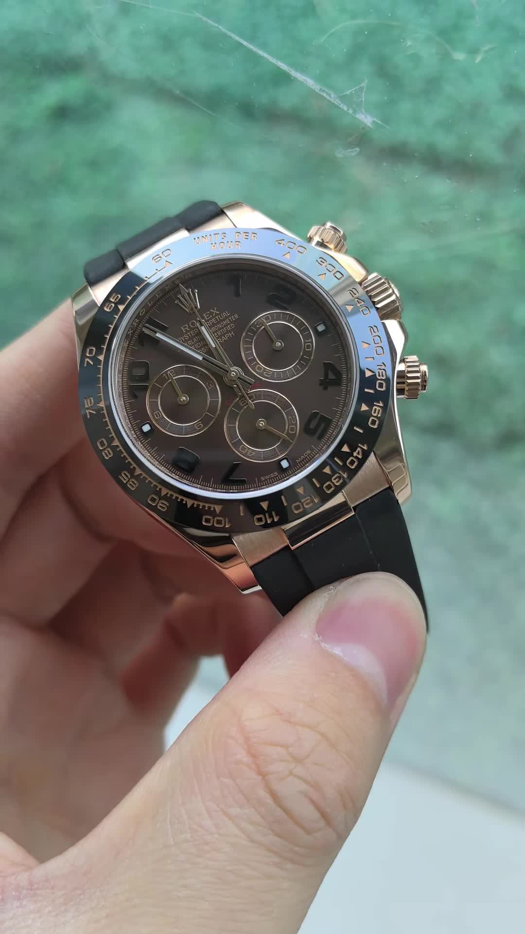 - Bezel Type: Black monobloc Cerachrom bezel in ceramic with moulded tachymetric scale
