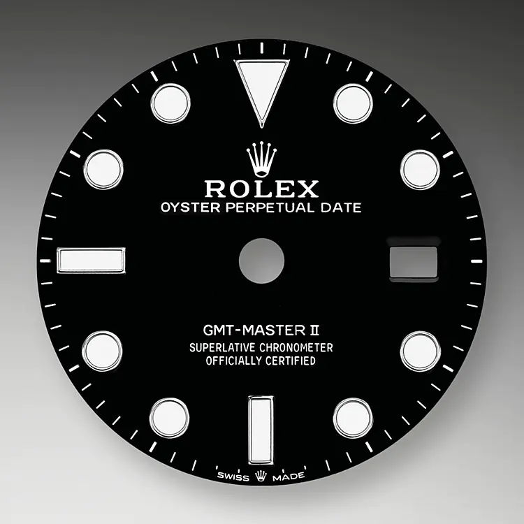 In addition to conventional hour, minute and seconds hands, the GMT-Master II features an arrow-tipped hand, which circles the dial once every 24 hours, as well as a bidirectional rotatable 24-hour graduated bezel.