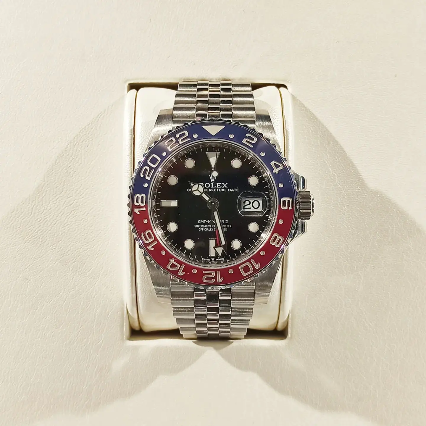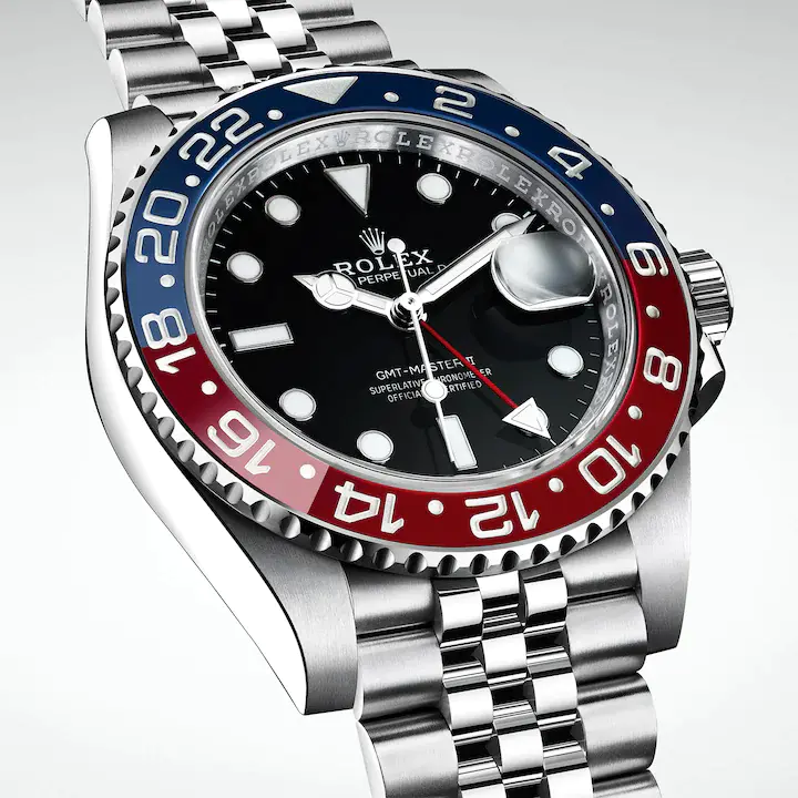 The emblematic two-colour bezel makes the GMT-Master II instantly recognizable.