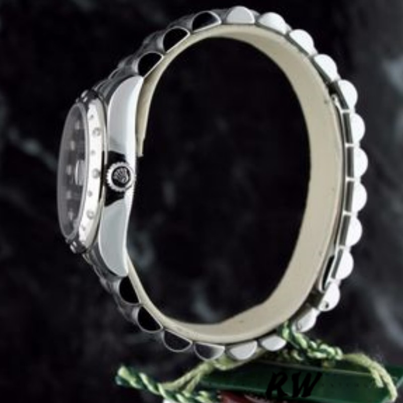 Rolex Datejust 178344 Black Diamond Dial Jubilee Bracelet 31MM Lady Replica Watch,31mm stainless steel case,Black Dial Set with Diamonds,white gold bezel set with 24 scattered diamonds, scratch-resistant sapphire crystal with cyclops lens over the date,date at 3 o'clock, Oystersteel Jubilee bracelet with five-piece links, concealed folding Crownclasp buckle.