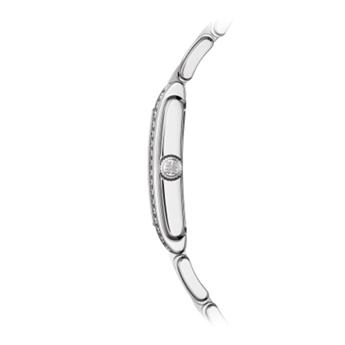 Stainless steel. Case dimensions: 25.1 x 30 mm. Height: 6.8 mm. Water-resistant to 30 m. Solid case back.